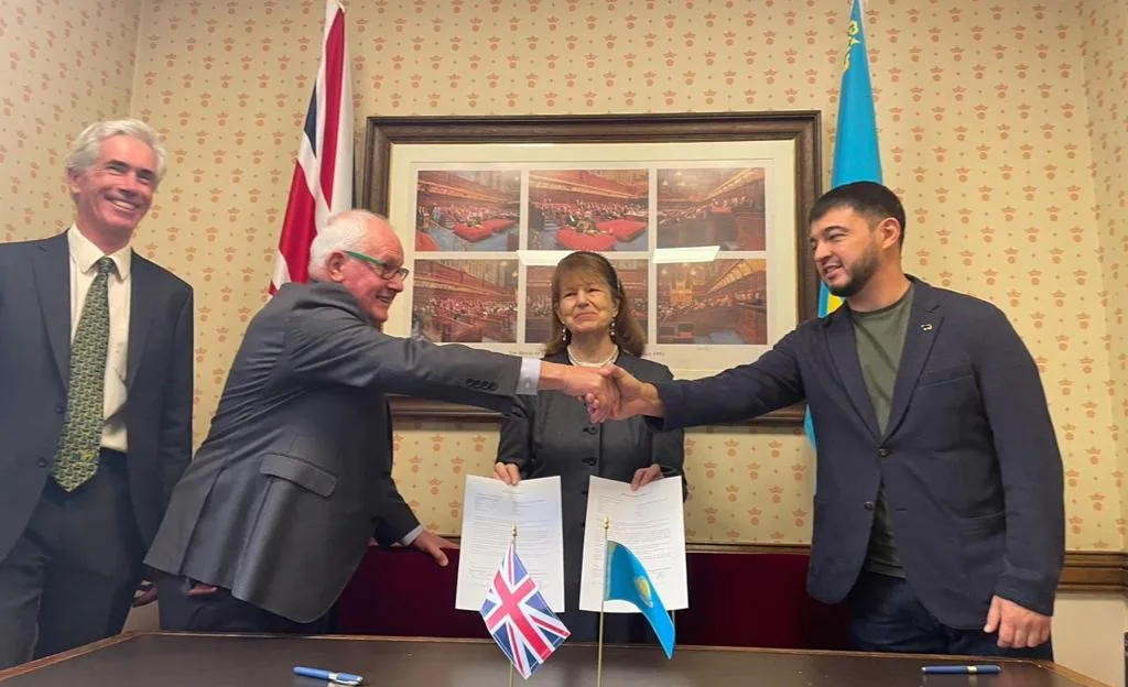 Signed at the House of Lords in the presence of Baroness Nicholson, the Prime Ministers Trade Envoy for Kazakhstan, are Mr Robert Whitcomb From The Aberdeen Angus Cattle Society, Mr Rob Wills Director of UK Sires and Mr Dauren Salykov Director of the Kazak Angus Chamber