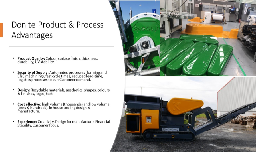 | Donite Plastics specialize in the design and manufacture of custom moulded plastic parts using vacuum forming and other processes. These processes are ideal for large, medium or small batch quantities and even one-off prototypes. Donite is based about 5 miles south of Belfast – in Saintfield, County Down. |